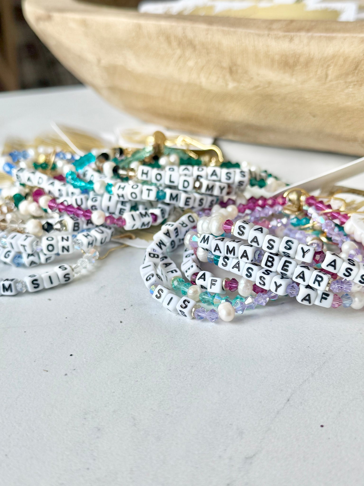 TO PERSONALIZE: Please comment in the "Notes to Seller" Box at Checkout.... the COLOR(s) & WORD/SAYING you would like on your bracelet. 18 would be about the max of Letters that would fit comfortably. The more Letters the less Crystal Beads!