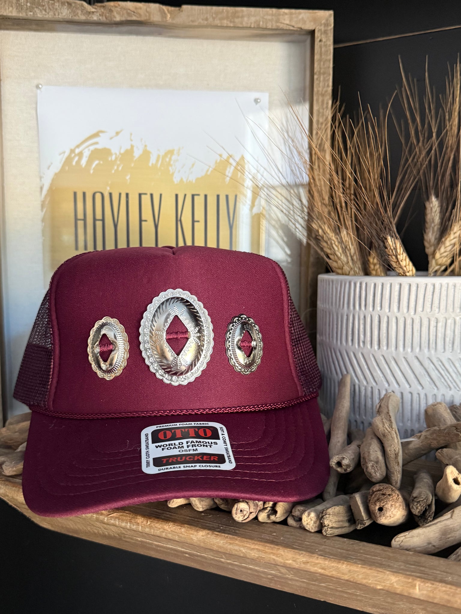Concho "Jeweled" Trucker - [Maroon & Silver]