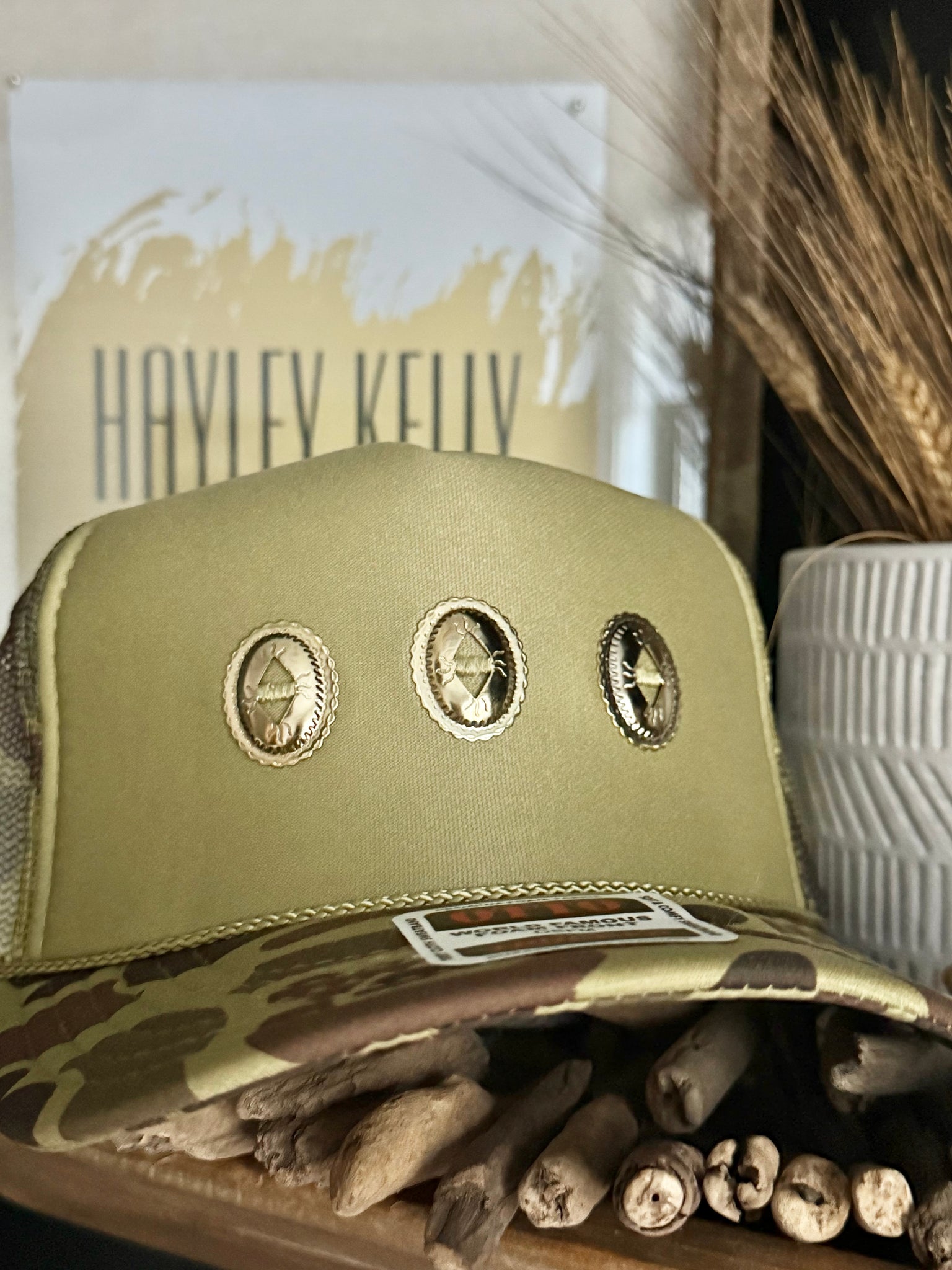 Concho "Jeweled" Trucker - [Olive Camo & Vintage Gold]
