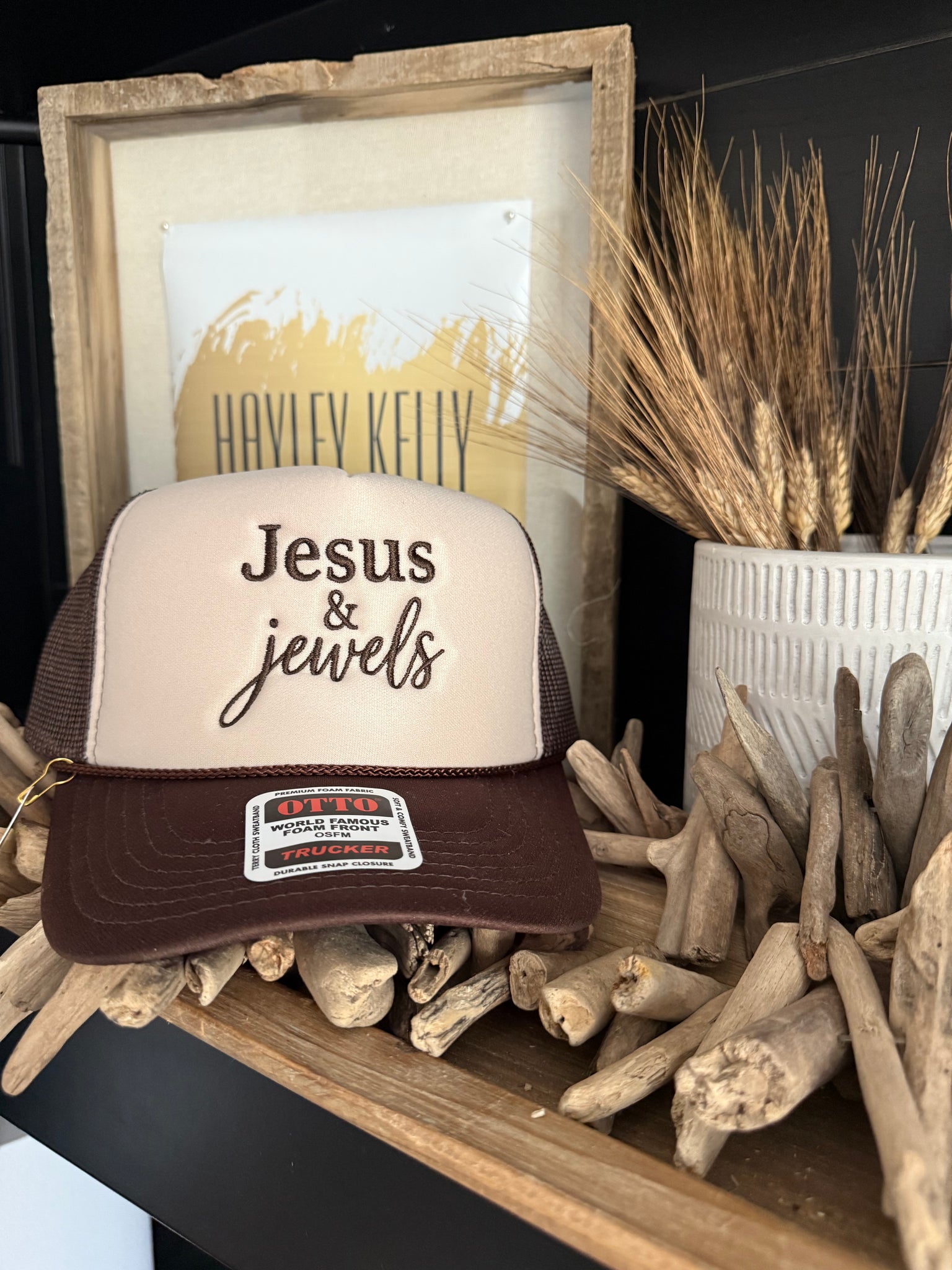 Jesus & Jewels Embroidered Trucker - [Chocolate Brown & Cream]
