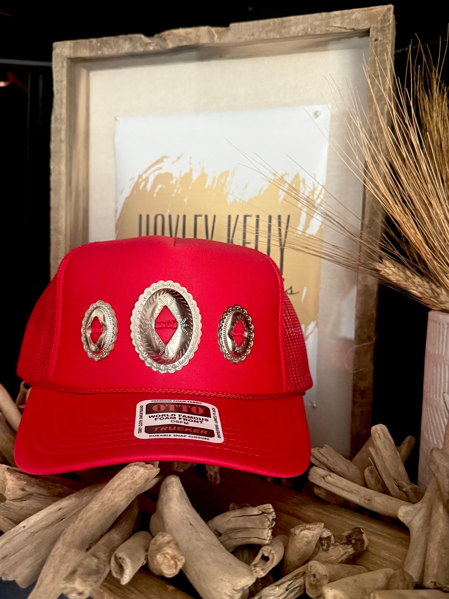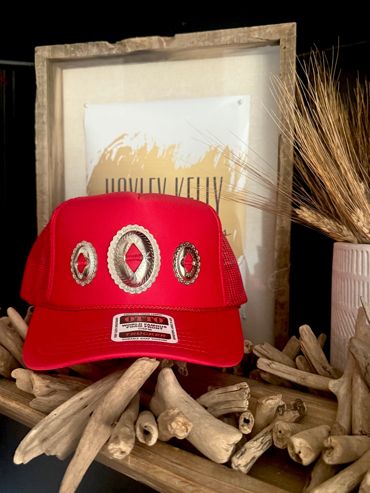 I mean..... how stinkin' cute & FUN are these Truckers! A FUN little western inspired flare with Concho "jewels"! It just adds such a unique look & a little fancy of course to your truckers and FUN outfits!