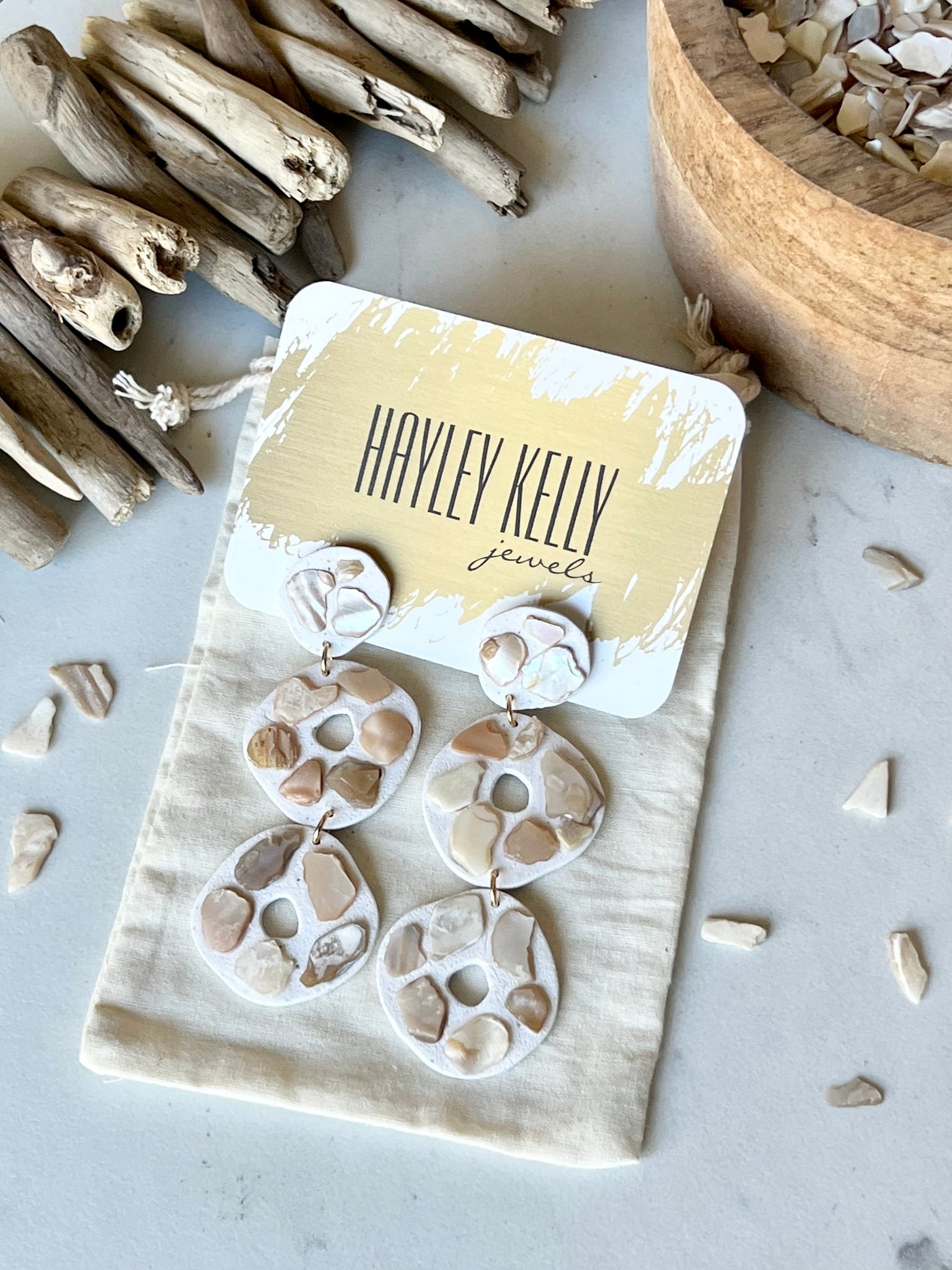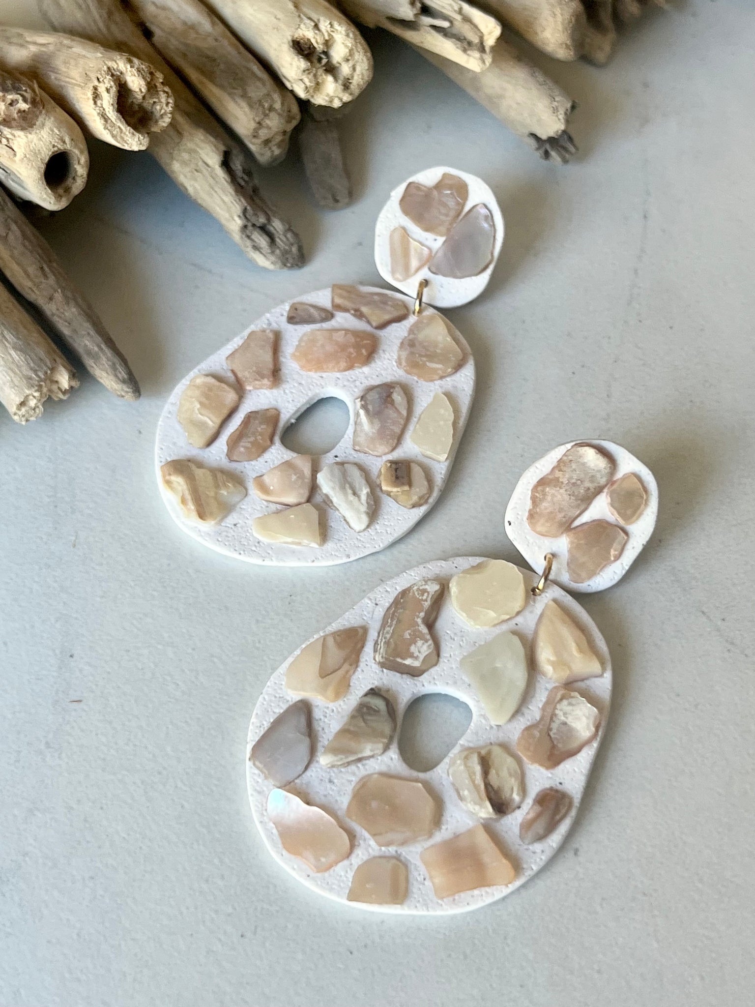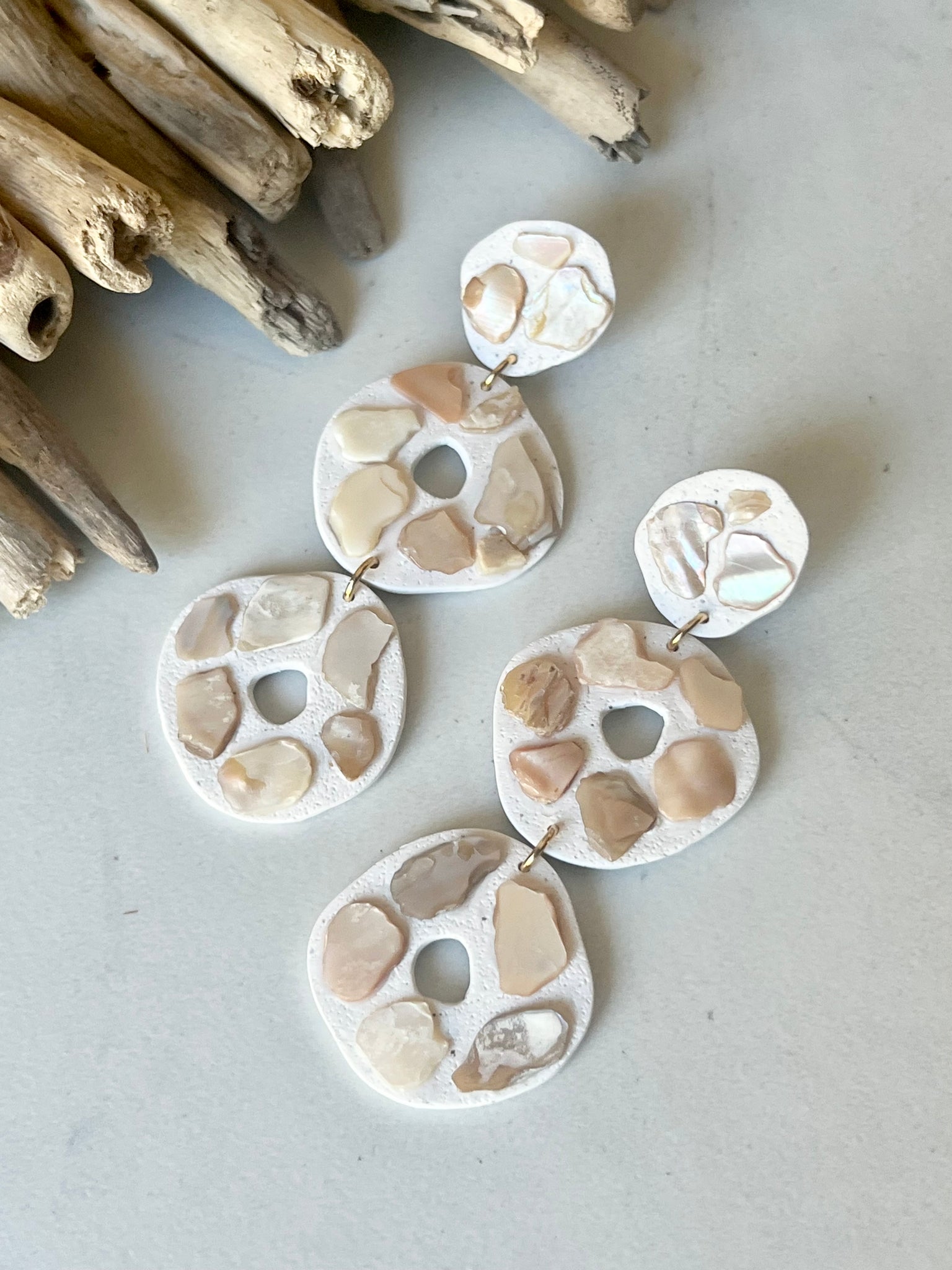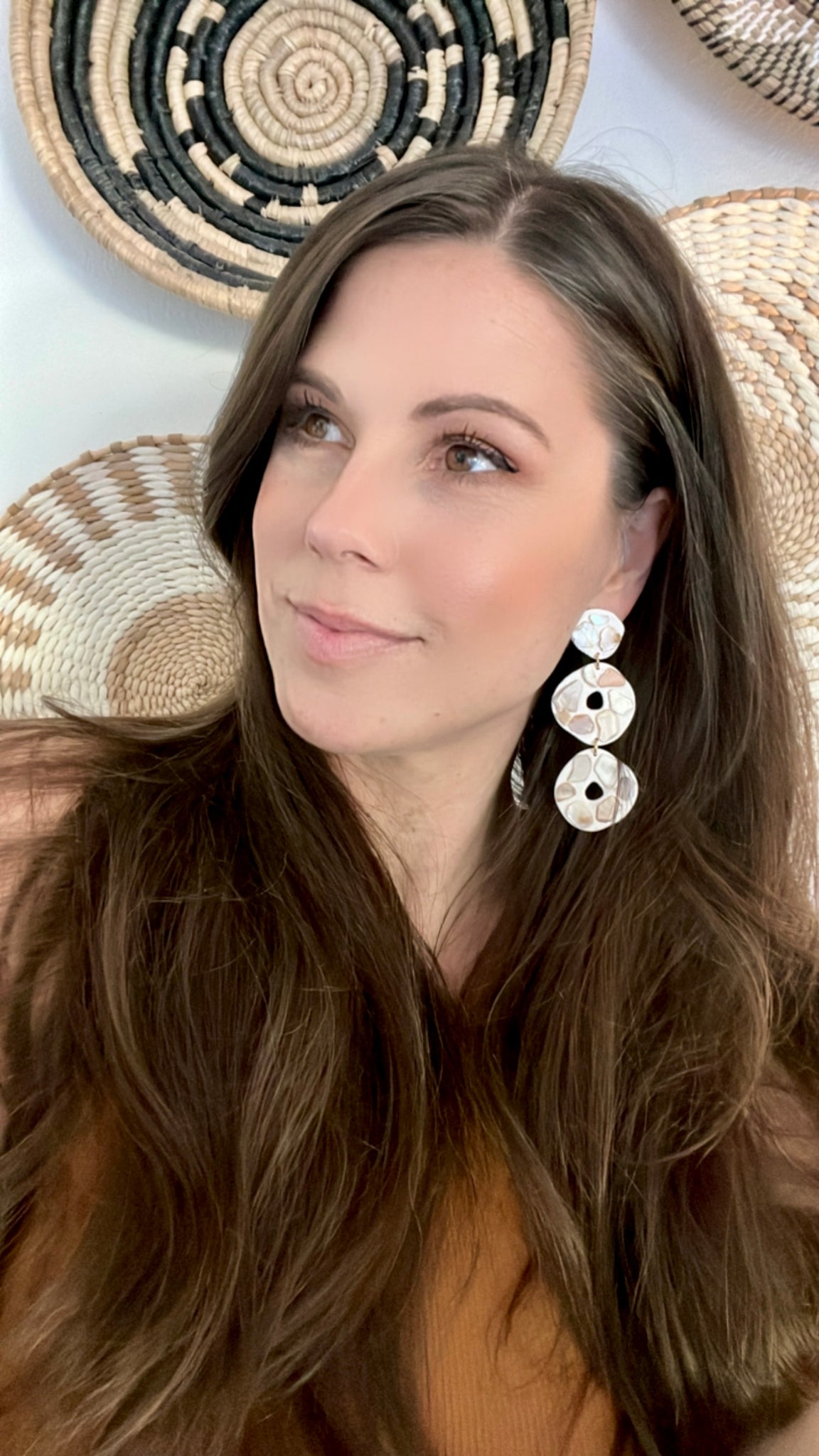 So much Fun, super Cute, Chic, Stylish and a mini Beach Vaca on your ears is exactly what the Pearly Shell Collection is! The organic shapes give them such a unique touch. Such a cute statement piece for any outfit & still super lightweight & comfy!