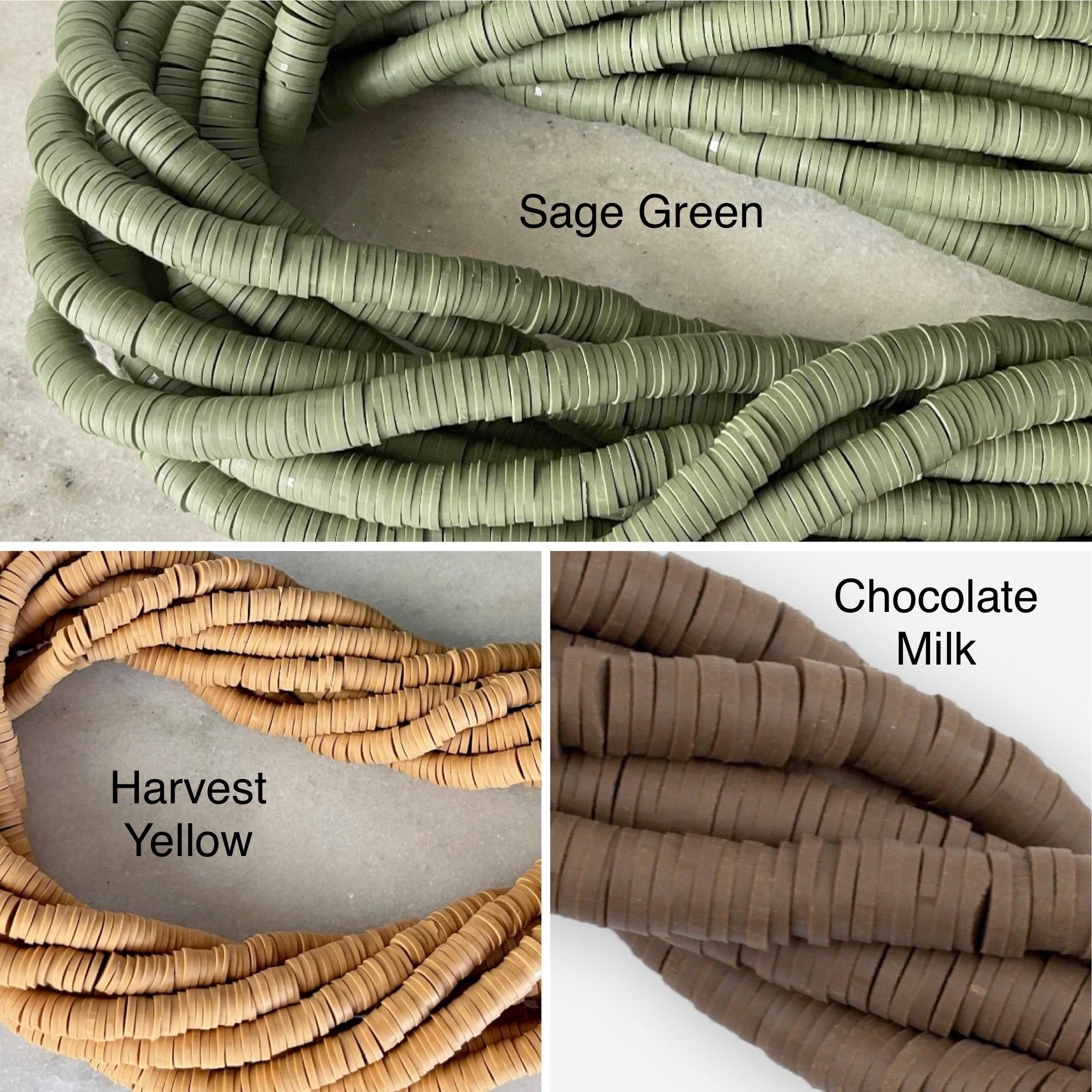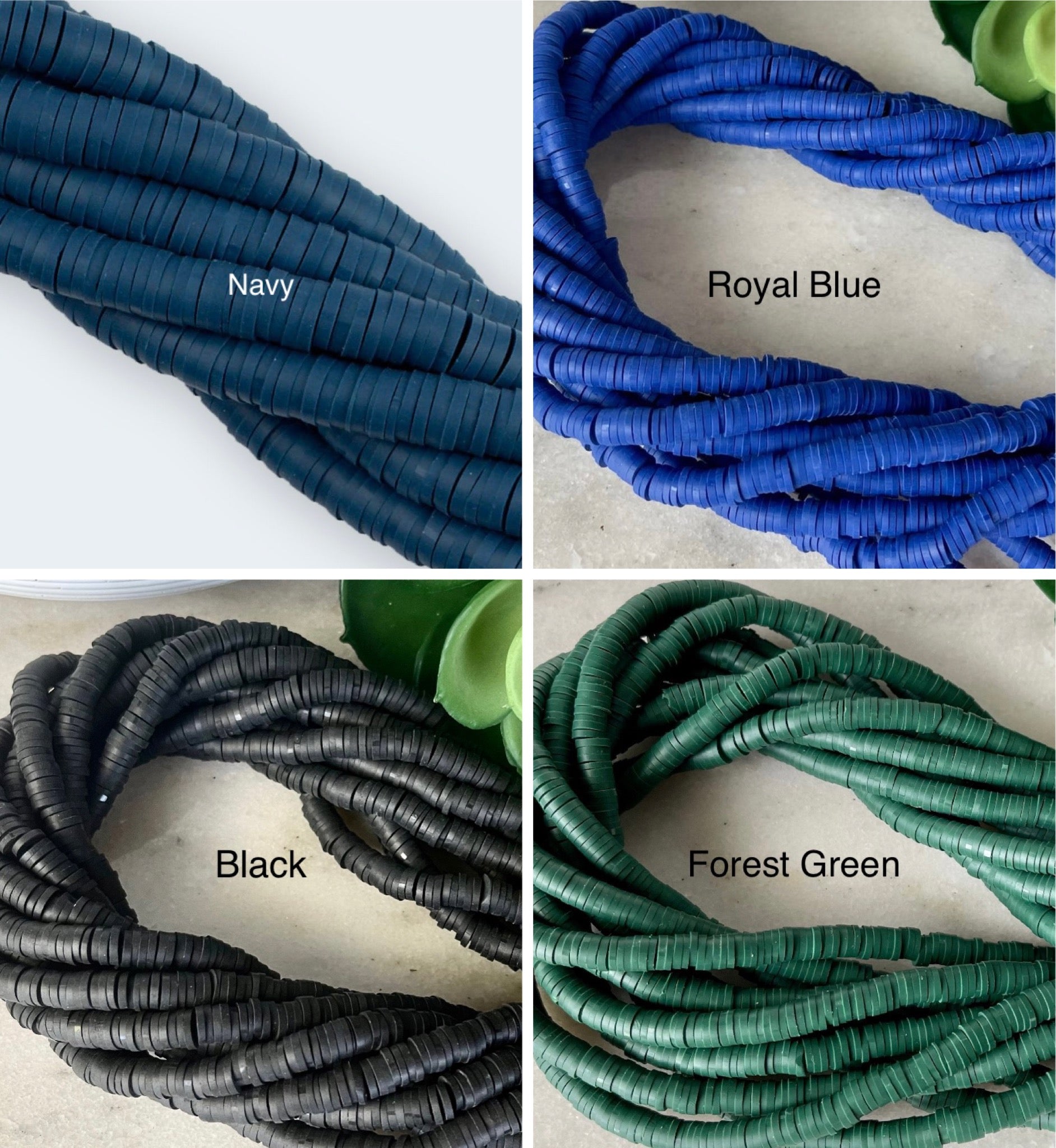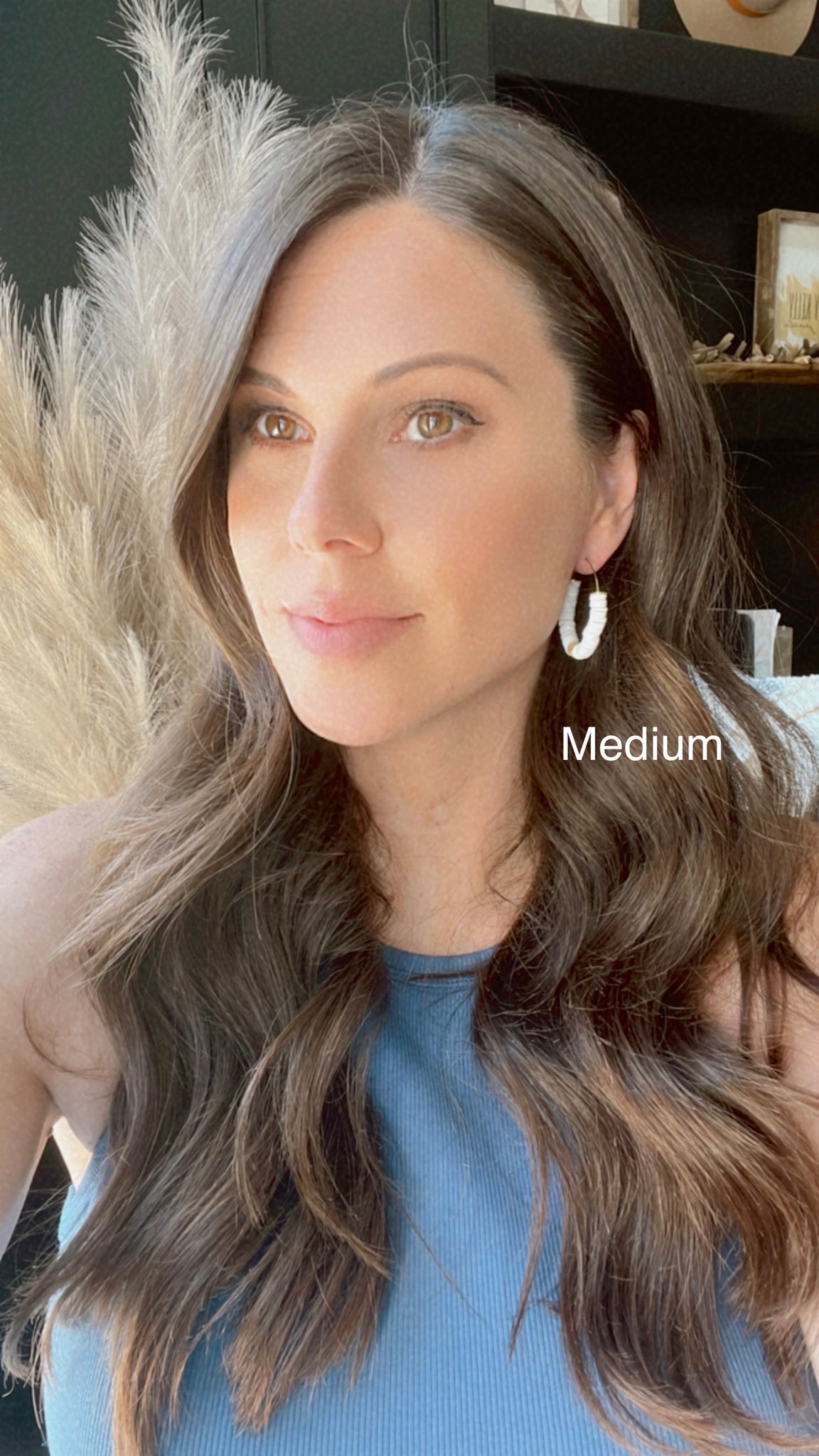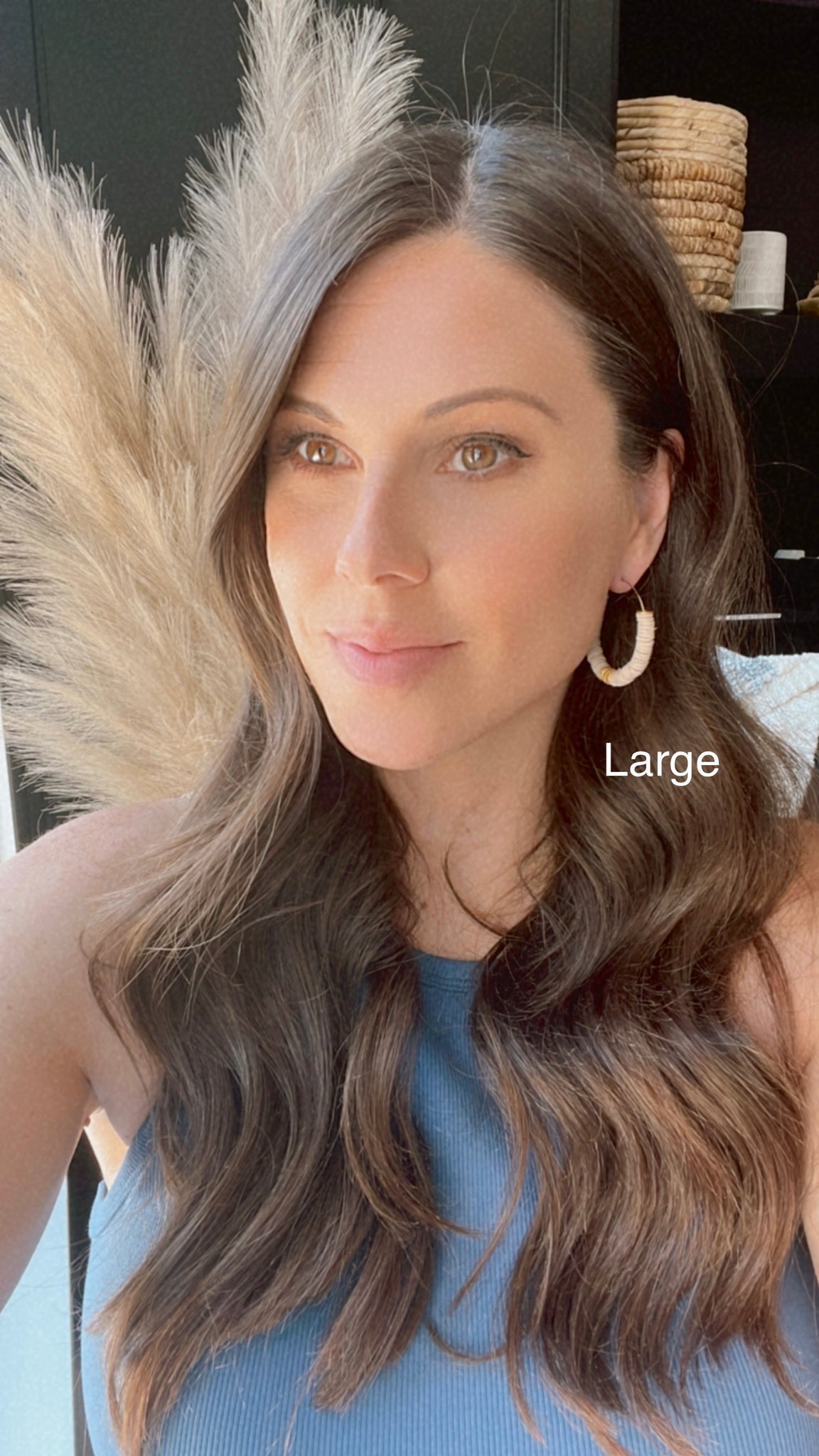 •Glass Gold colored End Beads ( extra secured bead ends so Heishi beads won't fall off of your Hoops!)