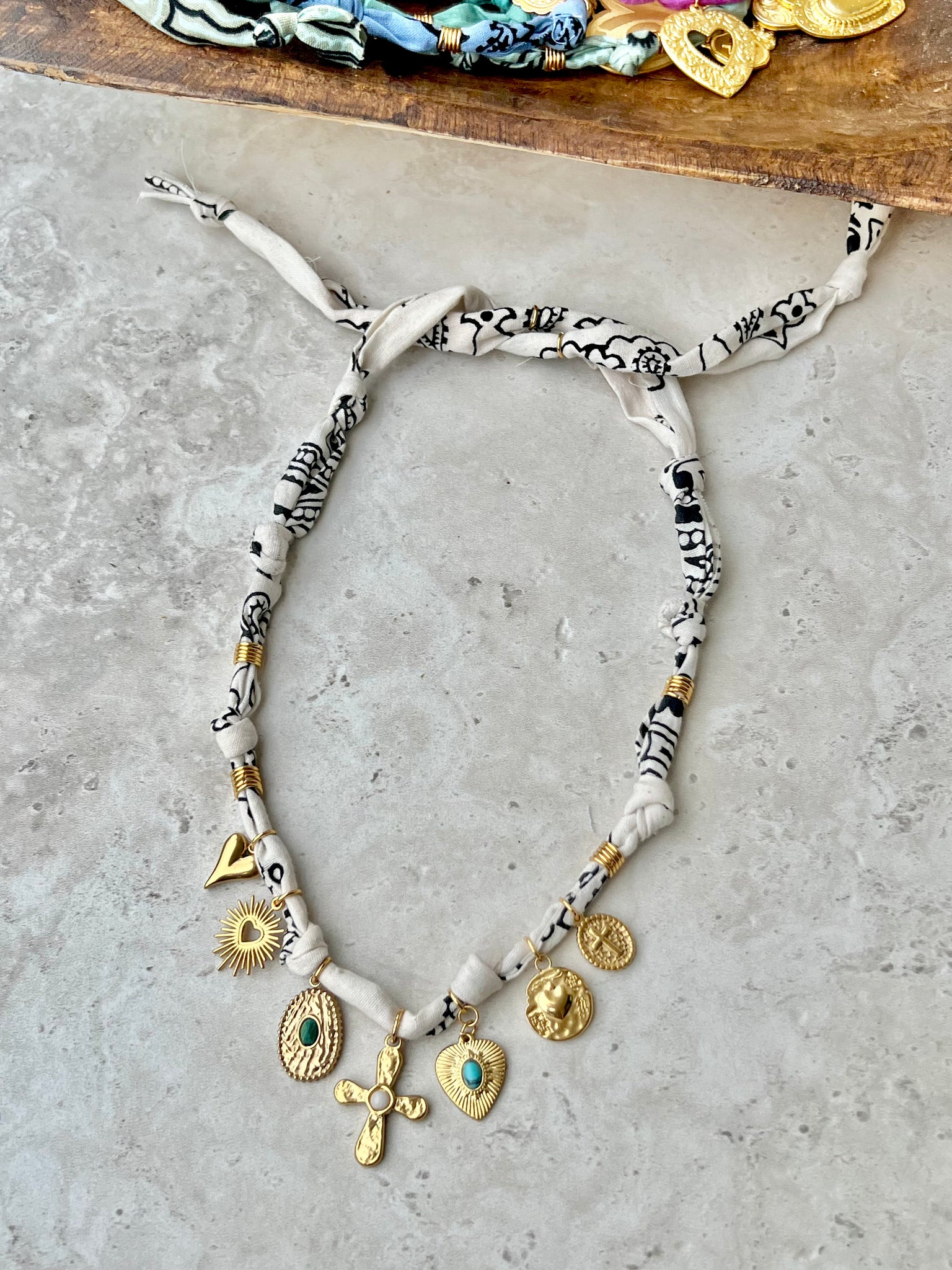 + Hand dyed, Sun Bleached Bandana Necklaces. 100% cotton.