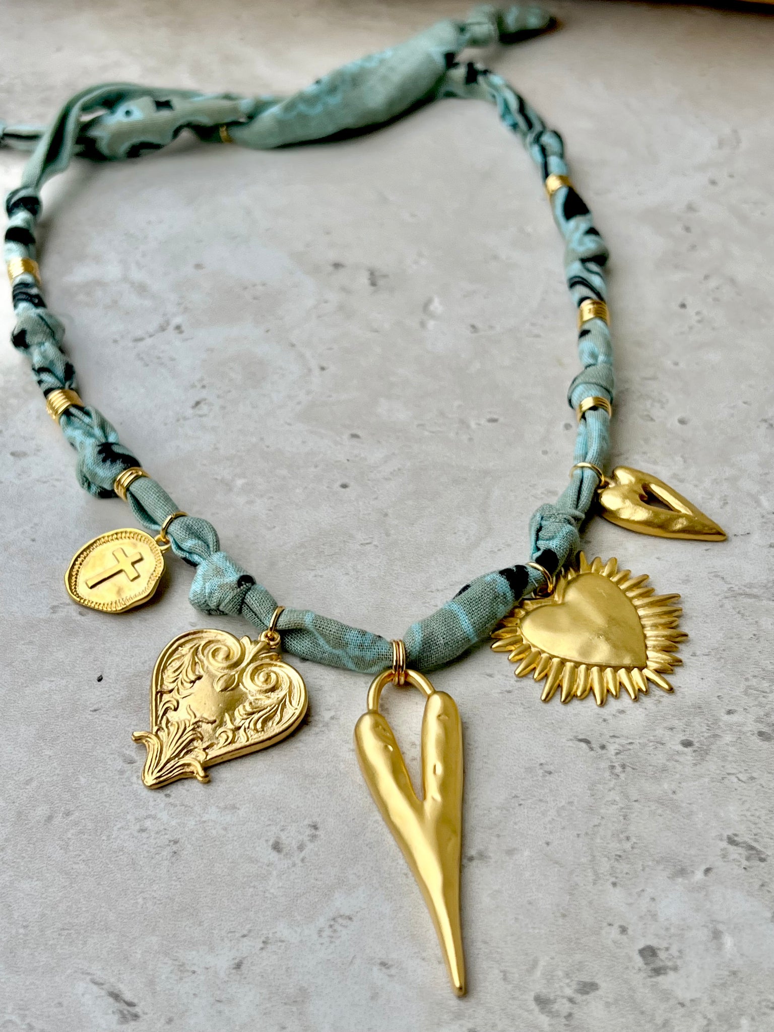 {Vintaged Olive/Turquoise} BANDANA CHARM