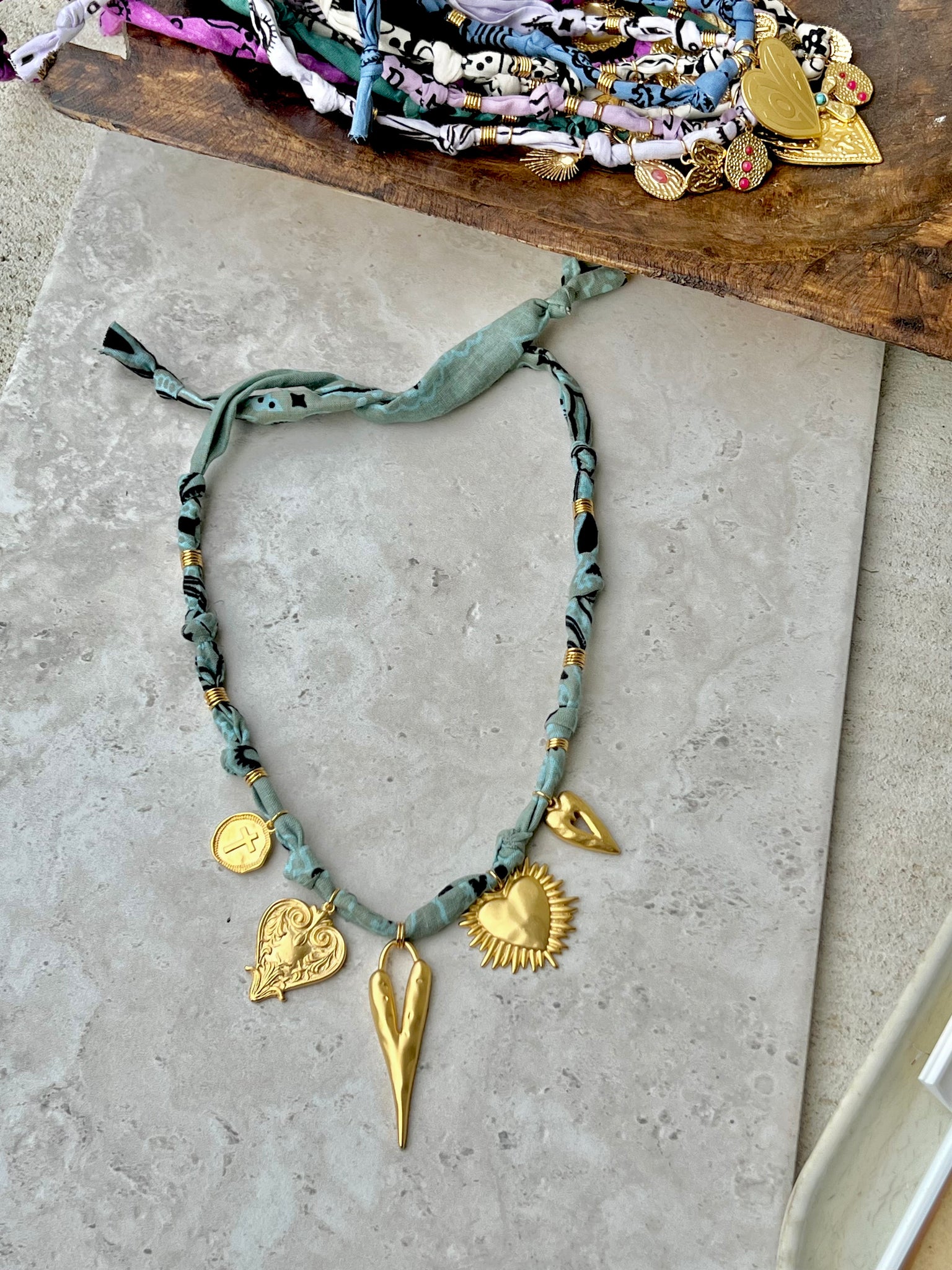 + Hand dyed, Sun Bleached Bandana Necklaces. 100% cotton.